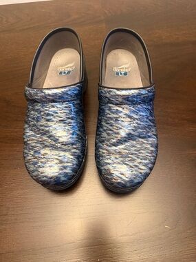 Dansko Blue Multi Patterned Clogs