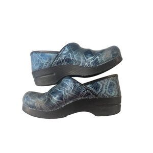 Dansko Blue Metallic Snakeprint Clogs 38 US 7.5 8