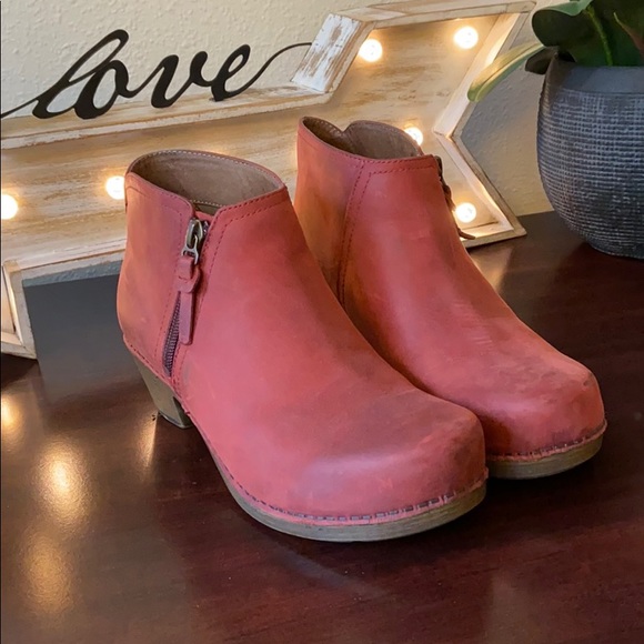 Distressed look, Brick Red Dansko booties! Worn a handful of times. Some scuffs that just need some leather conditioner.