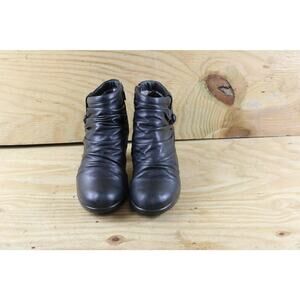 Dansko Boots Womens 7.5 Black Leather Ruched Buffy Ankle Bootie Zip Shoes