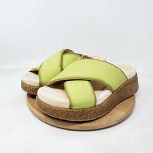 Dansko Bridget Platform Sandal Women 37 Chartreuse Leather Chunky Sole Boho Shoe