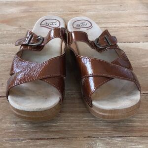 Dansko Bronze Patent Leather Criss Cross Strappy Slides Sandals Clogs Size 39