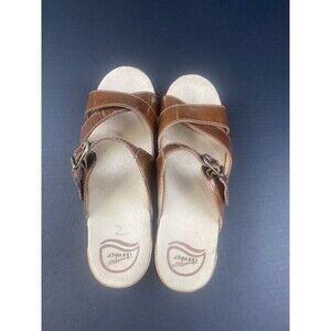 Dansko Bronze Patent Leather Criss Cross Strappy Slides Sandals Clogs Size 41