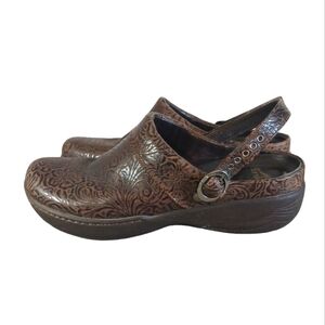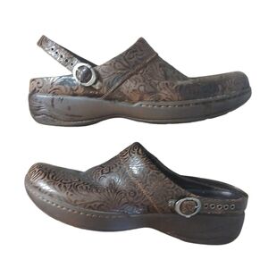 Dansko Brown Tooled Leather Clogs Slip On Shoes or Sling Back size 10-10.5