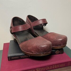 Dansko Burgundy Leather Makenna Mary Jane 90s Academia Chunky Clog Shoes Sz 41