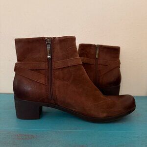 Dansko 'Cagney' Brown Leather/Suede Heeled Booties Sz 41 US 10.5-11