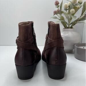 Dansko Cagney Burnished Suede Heeled Ankle Bootie Zip Up Brown