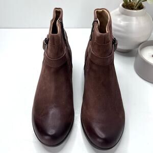 Dansko Cagney Burnished Suede Heeled Ankle Bootie Zip Up Brown Women 37/6.5 NWOB