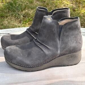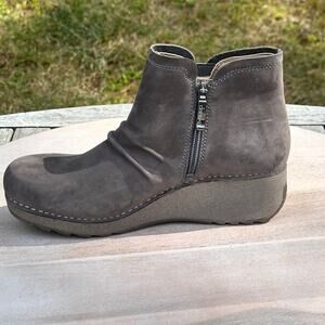 Dansko Caley Milled Leather Wedge Zip Ankle Boot Womens 38 7.5 8 US Gray Nubuck