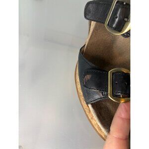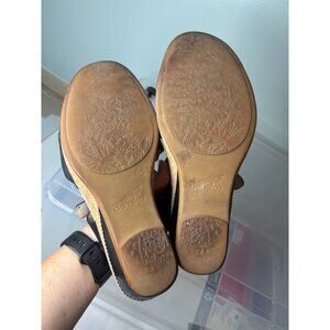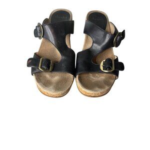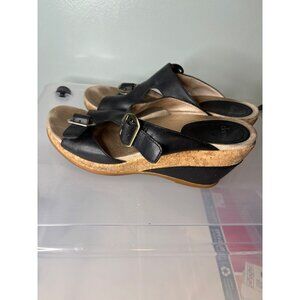 wedge, cork, Dansko sandals, cork wedge sandals, women's wedges, size 41 sandals, leather wedge shoes, summer sandals, comfortable wedges, stylish sandals, cork sole shoes, black leather sandals, adjustable buckle sandals, professional