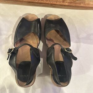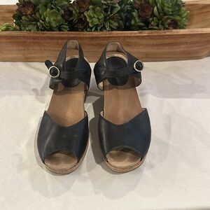 Dansko Charlotte Leather Black Cork Wedge Sandals size EU 41 EUC