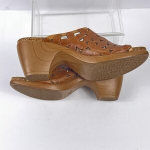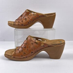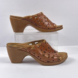 Dansko Clarrisa Sandals Womens 40 Brown Leather Floral Cutout Mule Slide Heels