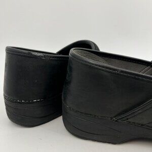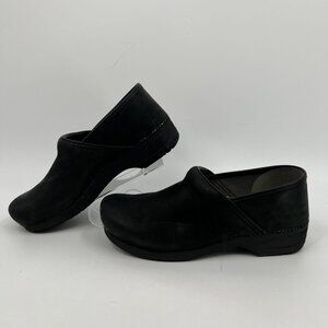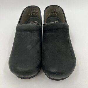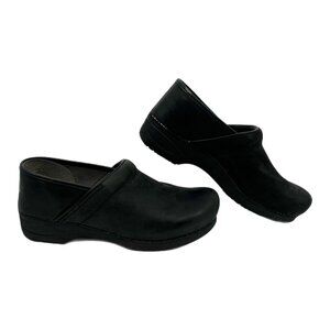 Step into comfort and style with these Dansko black clogs! Crafted from durable leather, these clogs are not only a timeless fashion piece but also a trusty companion for your feet. They're perfect for any season, any occasion, and any outfit. With a round toe and pull-on closure, these shoes are as practical as they are chic. Some light wear and spots add a touch of vintage charm, making them not just a pair of shoes, but a story.
