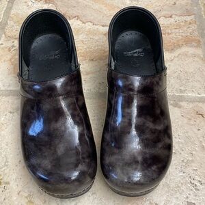 Dansko Clog Womens Sz 41 Black silver Marble Patent Leather Nurse Comfort