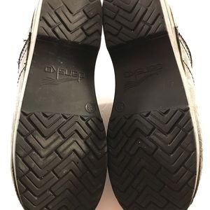 Black Tooled Leather Dansko Clogs Size 38 in good used condition.