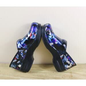 Dansko Clogs 38 Womens Floral Patent Leather Shoes Mules Slip on Comfort