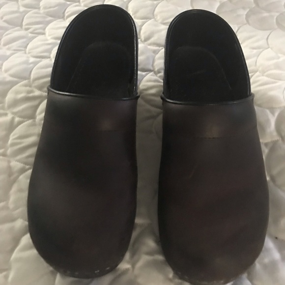 Brown leather Danskos in very good condition. Worn but still have a ton of life and very little wear.