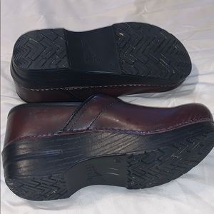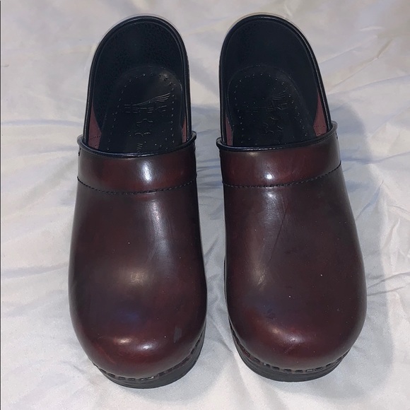 These are barely worn, rich brown color, super comfy Dansko Clogs. The size converts to 7.5-8.
