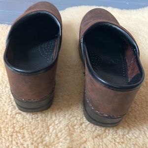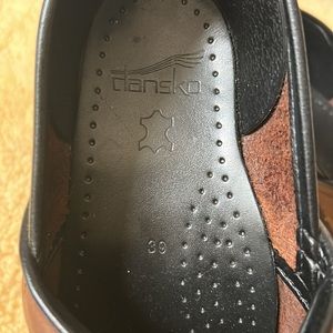 Size 39 Brown Leather Dansko clogs. Lots of life left in these! Very comfortable for restaurant or nursing jobs! Anything where you have to be on your feet all day!