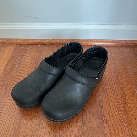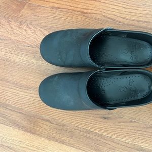 Size 9 dansko clogs, in good condition; see photos for some damage along side edge