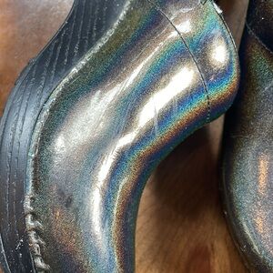 Dansko patent leather clogs- black/petrol/oil slick. Have scuffs- see all photos. EU size 39