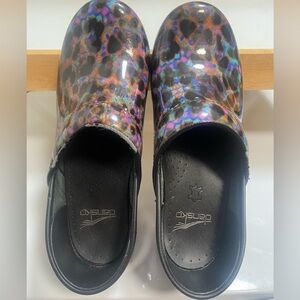 Dansko Womens Professional Clogs Patent Leather Leopard Animal Rainbow EU 36