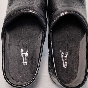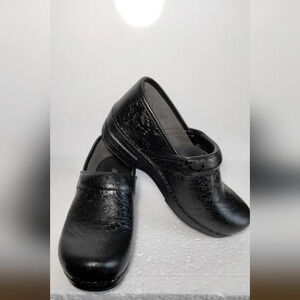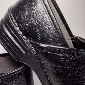 Dansko Clogs Leather Womens shoe Flower Pattern Black size 37 (6.5-7)