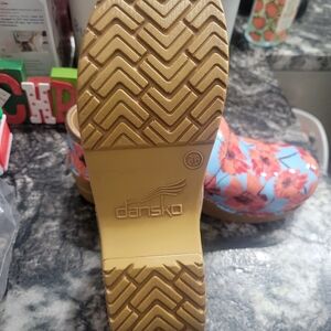 Dansko POPPIES Professional Patent Floral | Sz 36 / US 5.5-6- Blue & orange leather clogs.