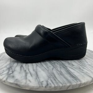 DANSKO CLOGS WOMEN 37 BLACK LEATHER SLIP ON COMFORT PROFESSIONAL NURSING MEDICAL