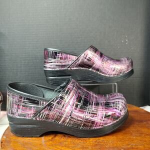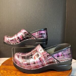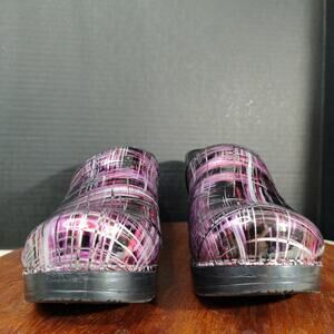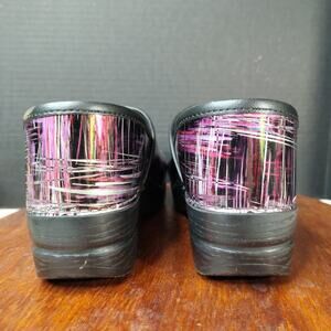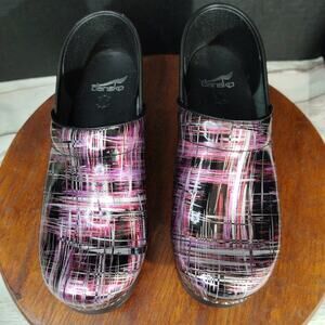 Dansko Clogs Women's Size 38 US 7.5 - 8 Black Pink Purple Gray Abstract Plaid