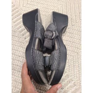 Crocodile, Slide On Closure, Wedge Heel, Leather Straps, Casual, Fall, Spring, Summer, Dansko Crocodile Wedge Sandals US 8 Gray Genuine Leather Straps Casual Slide On.
