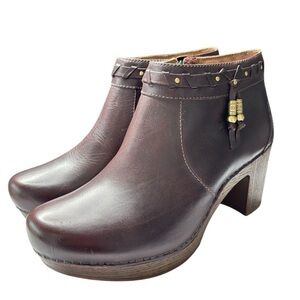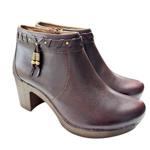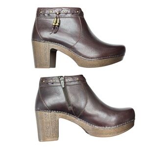 Dansko Dabney Ankle Boots Booties Brown Leather Block Heels