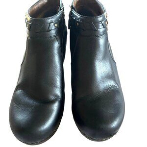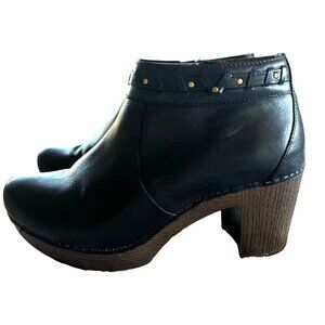 Dansko Dabney Black Nubuck Leather Platform Boots Booties Clogs Side Zip Size 39