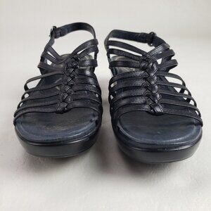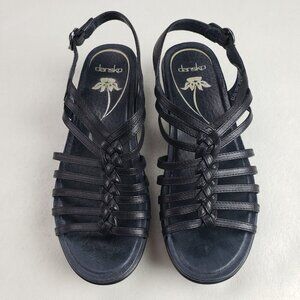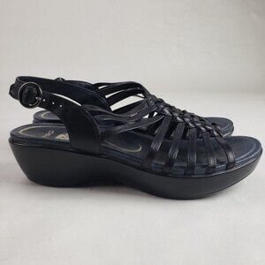 Dansko Dana Strappy Wedge Sandal Women 7.5-8 38 Black Leather Slingback Open Toe
