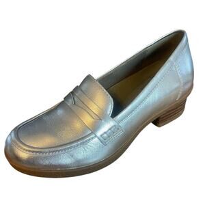Dansko Danica Silver Leather Slip On Chunky Penny Loafer Size 6/36