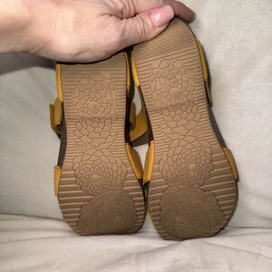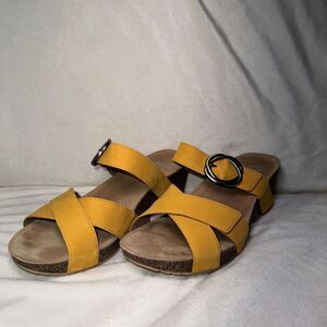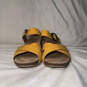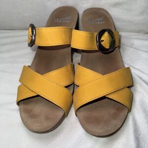 Dansko Dark Yellow Susie Milled Nubuk Wedge Buckle Slip On Sandals Size 40 9.5