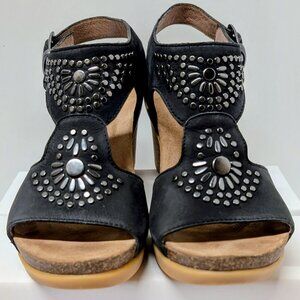 Dansko Deandra Block Heel Sandals in Black Nubuck Leather