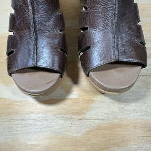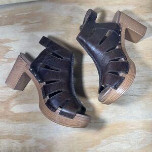 Dansko Demetra brown leather peep toe sandals in preowned condition