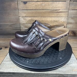 Dansko Deni Mules Clogs Shoes Womens Size 8.5-9 US 39 EU Brown Leather Fringe