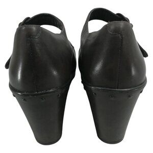 Design: Wedge Mary Jane style comfort shoes with studded toe and heel detail as well as leather wrapped heel.