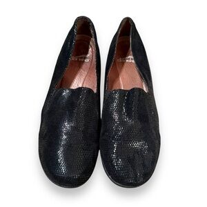 Dansko Farah Black Leather Lizard Reptile Embossed Slip On Loafers Clogs Sz 41