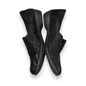 The high-quality black leather upper showcases a striking lizard pattern, adding a subtle yet bold texture that sets these shoes apart. Designed with Dansko’s signature attention to comfort, the Farah loafers feature a cushioned footbed and slip-on design for convenience and ease. The lightweight construction and supportive sole ensure you’ll stay comfortable on your feet, whether you're running errands or heading to the office.