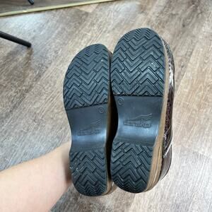 Dansko Filigree Floral Brown Leather Patent Comfort Clogs Size 38