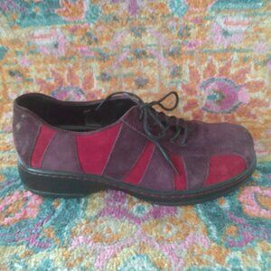 Women's 39. Good worn condition. Lace up style, raspberry and purple suede, black sole. Super cute for fall.