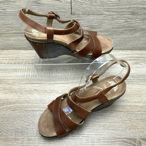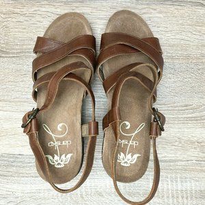 Dansko Frida Slingback Wedge Sandal Antique Brown Leather Strap Sz EU 41 US 10.5