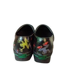 Step into comfort and style with these women's black clogs featuring a vibrant, colorful frog print. Perfect for adding a playful touch to your everyday look.