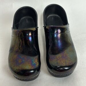 Dansko Genuine Leather Black Iridescent Platform Mule Slip On Clogs