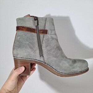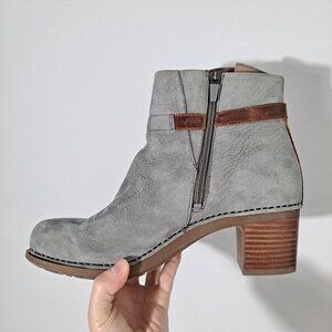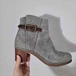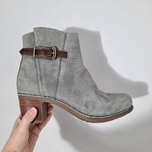 Dansko Hartley Grey Blue Distressed Leather Heel Boots Buckle 39
