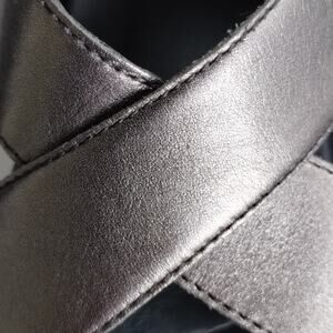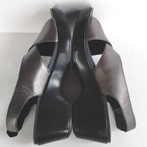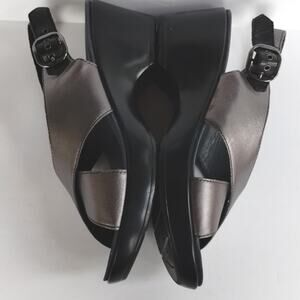 Dansko Jacinda Metallic Pewter & Black Leather Strappy Hidden Heel Sandals 40