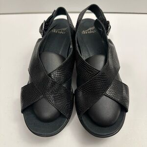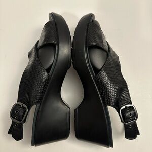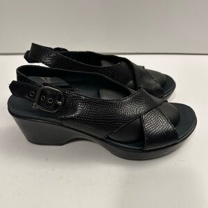 Dansko Jacinda Black Snake Texture Leather Wedge Slingback Sandals EU 40